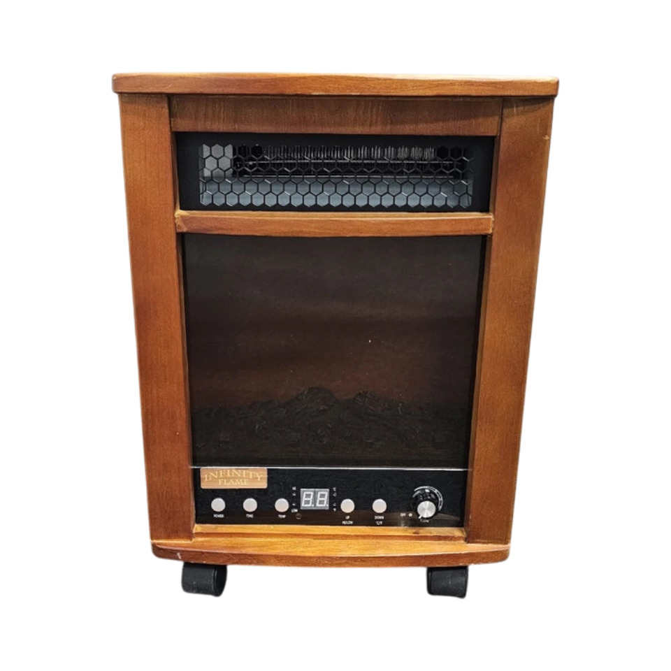 Enjoy reliable warmth and a cozy fireplace glow with this 1500W Electric Infrared Portable Fireplace Heater. Designed to heat spaces up to 1,000 square feet, this unit uses infrared heating technology to deliver efficient, comfortable warmth without drying out the air. Its real wood cabinet and rich brown finish add classic style to any room.